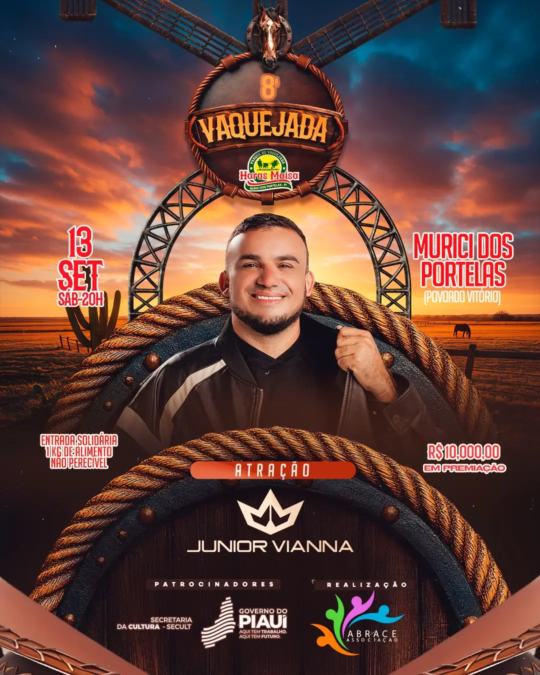 A 8ª Vaquejada do Parque Haras Maisa é realizada pela Abrace AssociaçãoO município de Murici dos Portelas recebe, neste sábado (13), a 8ª edição da Vaquejada do Parque Haras Maisa, no povoado Vitório. O evento, que começa às 20h, promete reunir amantes da cultura sertaneja em uma grande celebração que une esporte, música e tradição.