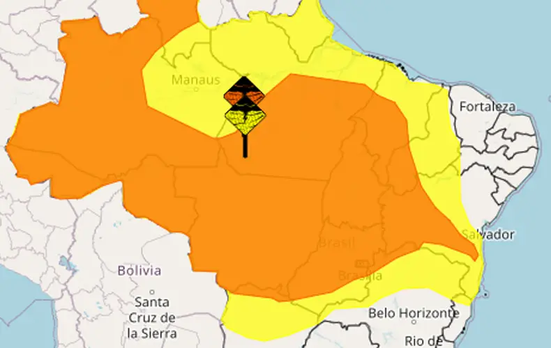 Para as demais cidades, o alerta amarelo indica risco potencial. A chuva pode variar entre 20 e 30 mm/h ou chegar a 50 mm/dia, com ventos entre 40 e 60 km/h. Embora o risco seja menor, o Inmet destaca chances de interrupções pontuais de energia, queda de galhos, alagamentos e raios.