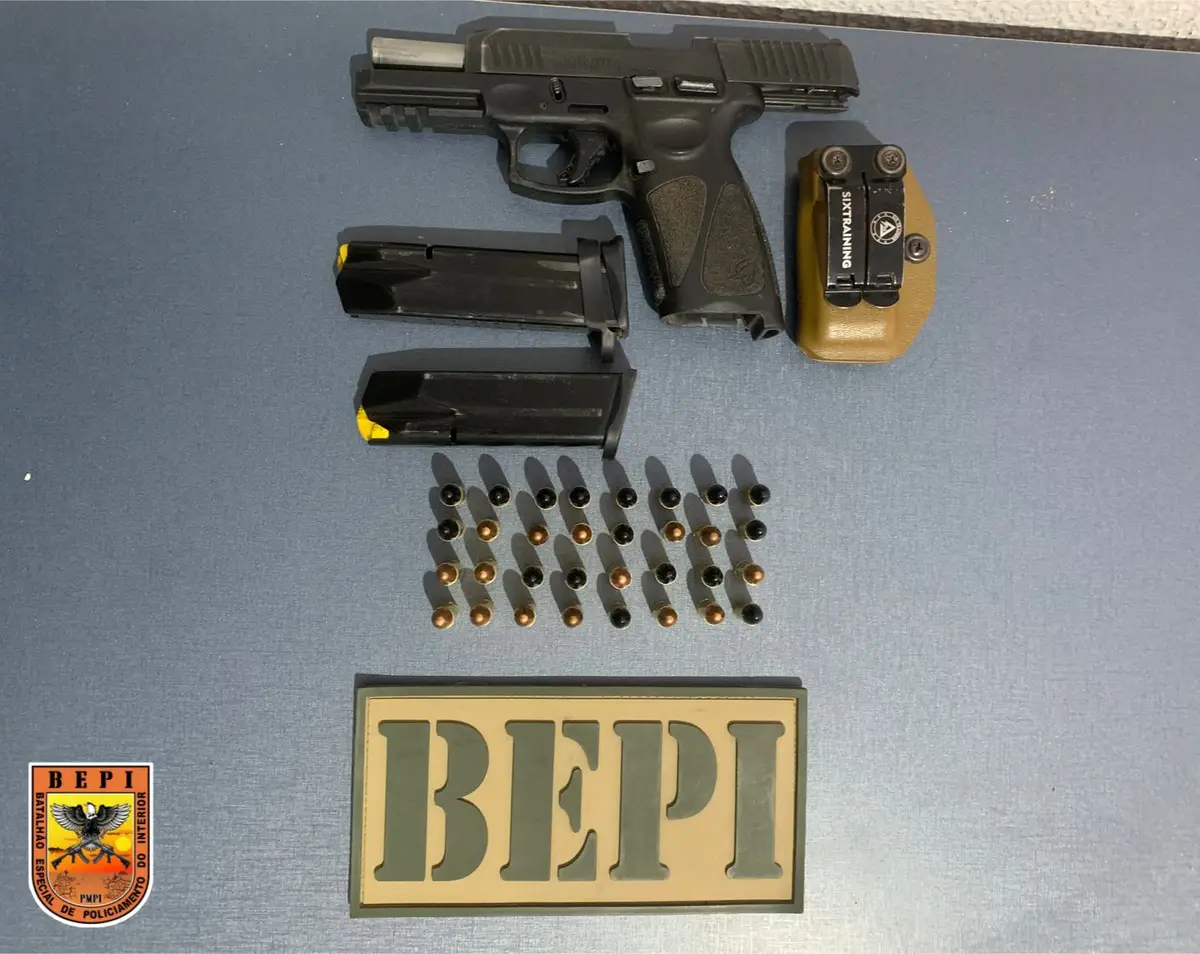Polícia age com firmeza e põe fim ao passeio perigoso de motorista que circulava com armamento proibido e munição intactaO BEPI mostrou mais uma vez que, quando o assunto é segurança pública, não há espaço para improviso — muito menos para infrator desfilando com armamento restrito. Na zona rural de Piracuruca, policiais interromperam a noite “tranquila” de um homem de 41 anos que achou boa ideia circular com uma pistola 9mm, dois carregadores e 32 munições intactas dentro do carro.