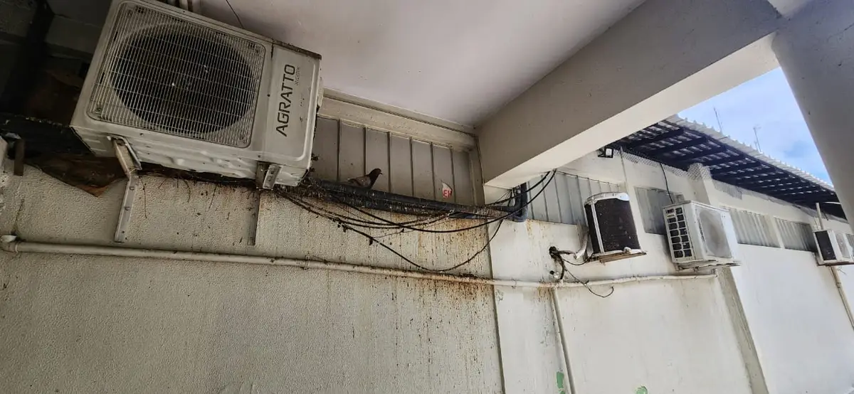 A fauna urbana agradece enquanto pacientes dividem espaço com fezes e riscos sanitáriosEm vídeo gravado e fotos no Hospital Municipal do Buenos Aires, o cenário chama atenção não pelo atendimento médico, mas pelo criatório involuntário de pombos instalado na própria estrutura do prédio. As aves fazem ninhos atrás de aparelhos de ar-condicionado, ocupam frestas da fachada e deixam um rastro nada simbólico de “boas-vindas”: fezes espalhadas pelas paredes e áreas próximas à circulação de pessoas.