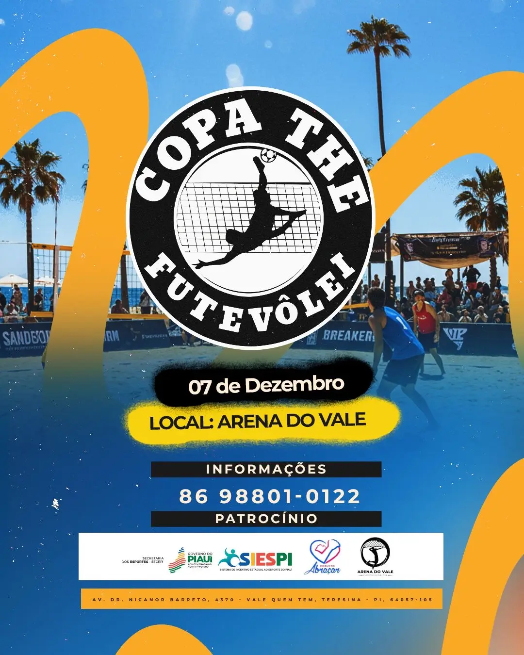 A Copa THE de Futvôlei tem como proposta fortalecer o esporte na zona LesteA Arena do Vale, no bairro Vale Quem Tem, zona Leste de Teresina, será palco no próximo dia 7 de dezembro da Copa THE de Futvôlei, competição organizada por Ellen Albuquerque e realizada pela Cajuí Eventos. O evento conta com patrocínio da JMonte, por meio do SIESPI, além do apoio da Secretaria dos Esportes do Piauí (SECEPI) e do Governo do Estado.