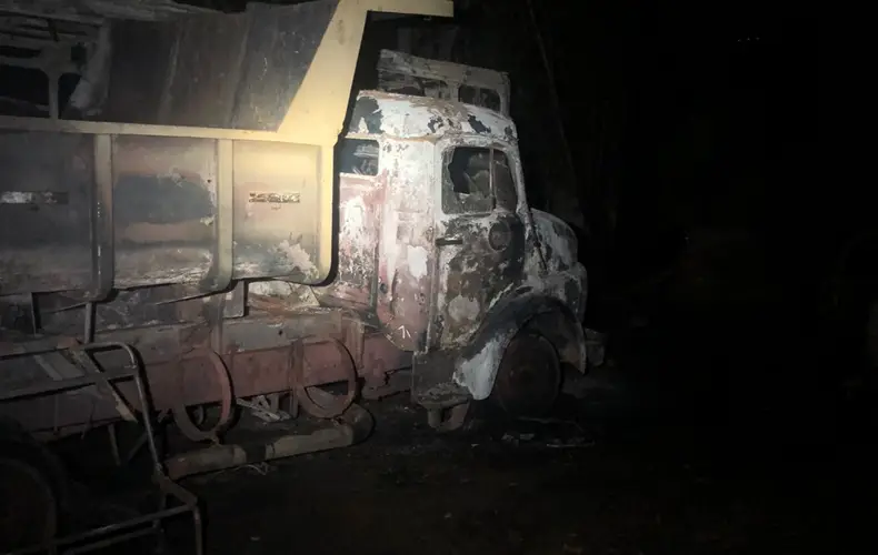 Conforme informações preliminares coletadas no local, o fogo teria começado em um dos veículos estacionados na garagem da oficina. As chamas destruíram completamente dois caminhões e dois ônibus, entre eles um veículo escolar. Outros dois automóveis, que eram usados como sucata, também foram consumidos pelas chamas.