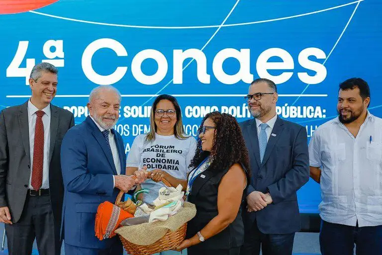 Conferência Nacional de Economia Popular e Solidária retoma debates após 11 anosO presidente Luiz Inácio Lula da Silva participou, nesta quarta-feira, 13 de agosto, da abertura da 4ª Conferência Nacional de Economia Popular e Solidária (Conaes), evento que marca a retomada da conferência após mais de dez anos. A ação é um espaço nacional de debate, participação e construção coletiva de propostas para fortalecer a economia popular e solidária no Brasil.
