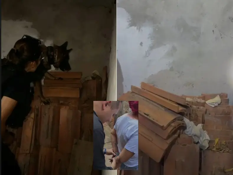 Durante a operação, entorpecentes foram apreendidos, inclusive escondidos em telhas. O detalhe é que o esconderijo não foi páreo para o trabalho do Núcleo de Operações com Cães, que localizou rapidamente o material.