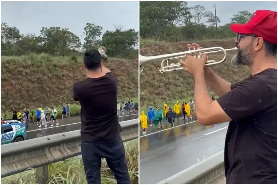 Vídeo com gesto irônico circula nas redes e intensifica clima de polarização durante ato políticoUm episódio inusitado marcou a chamada “Caminhada da Liberdade”, mobilização liderada pelo deputado federal Nikolas Ferreira em direção a Brasília. Durante a passagem do grupo por um trecho de rodovia federal, um trompetista surgiu à margem da estrada tocando um berrante, em uma clara provocação aos participantes do ato.